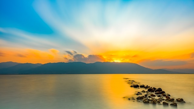 说明:小光圈在日出日落时保持整个景色清晰,捕捉更多细节。