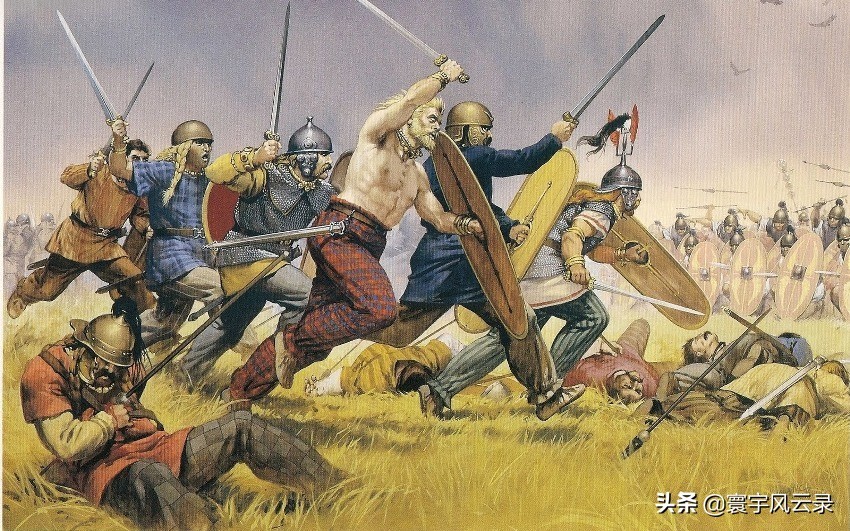 日耳曼民族可能都是能征善战的人,他们平时骑在马背上,在和平的时候放牧,打起仗来就冲锋陷阵,特别彪悍。他们全民皆兵,打起仗来所有的成年男人都是战士,每个人手中都握有长矛的。