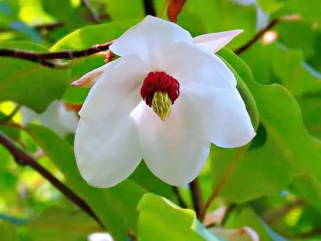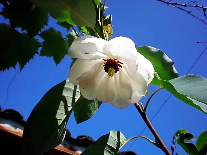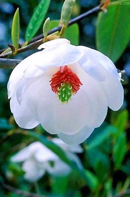 龙女花~花瓣洁白丰盈,花蕊深红,高高开于枝头⋯