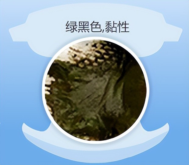 1绿黑色,粘性的婴儿大便,又名胎粪:通常类似柏油状。胎粪是婴儿出生后最初的大便,是由羊水中带来的残渣形成的。它看上去黑中带绿,是正常现象,因为其中含有胆红素,这是红细胞的降解产物。婴儿在刚出生的3天内排出这样的大便是正常现象,妈妈不用担心。