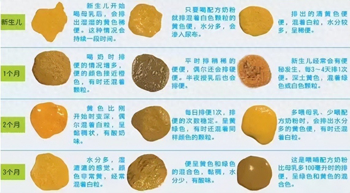3、配方奶喂养儿便便,呈淡黄色。大便较干,大多成形,含乳凝块较多、较大,为碱性或中性,量多,较臭,每日1~2次,有时发生便秘。