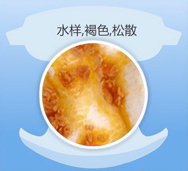 5水样,褐色,松散的大便,又名腹泻型婴儿大便:通常呈水样,夹杂块状物。婴儿偶尔拉肚子不需要引起警觉,但如果持续两天或更长时间,就可能是腹泻。腹泻会造成脱水,也可能是感染的征兆。通常这种感染并不危险,但由于拉稀而流失大量体液从而导致脱水,这应该引起注意。需要给宝宝补充流质——配方奶和水,或进行多次母乳喂养。