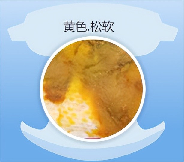 2黄色,松软的大便,又名母乳喂养型婴儿大便:通常是黄色的凝固状。母乳中含有完美的营养,母乳喂养的婴儿大便一般不臭,大便时伴随放响屁,听上去拉得很多。一直母乳喂养,这种类型的婴儿大便就会持续下去,直到添加配方奶或固体食物为止。