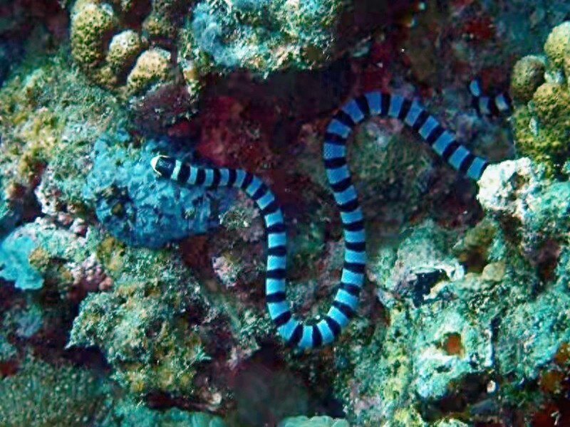 其他名:灰蓝扁尾海蛇、火烧蛇