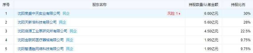 第二大股东沈阳天新浩科技有限公司,持股28%。其他三家股东比例较低。