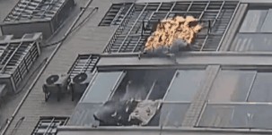 将5、6楼邻居晾晒的棉被引燃