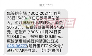 记者注意到,这条短信的发送时间,已经是在今年10月份民丰银行执行新ETC政策两个月之后。