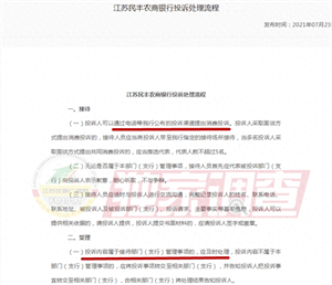 而在江苏民丰银行的官网上,2025年07月23日发布了《江苏民丰农商银行投诉处理流程》: