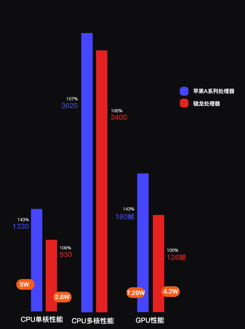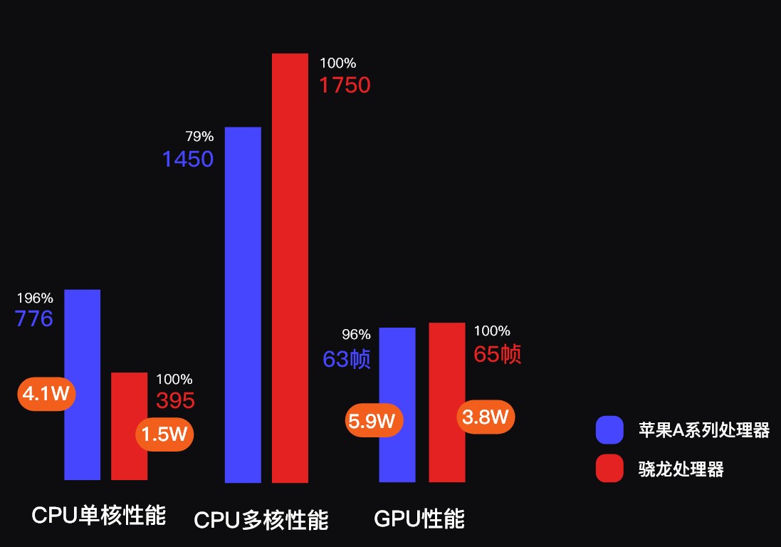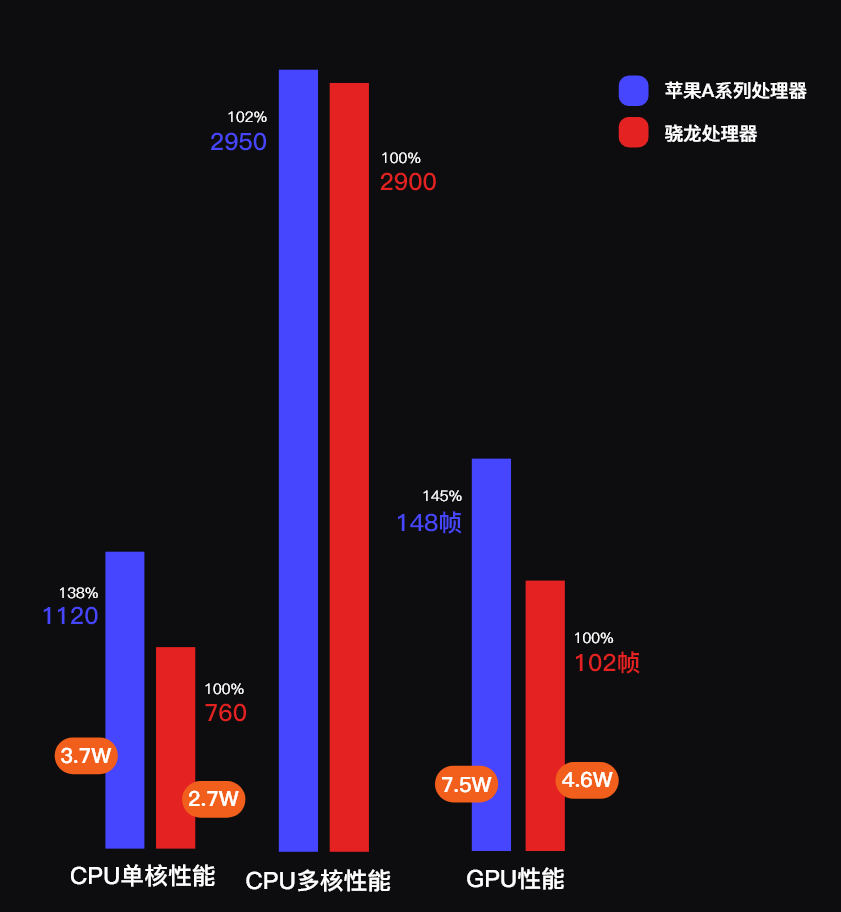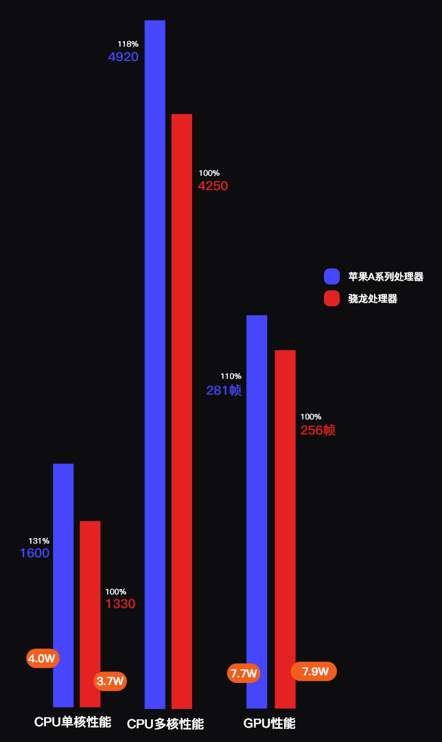 苹果A系列处理器全面反超。