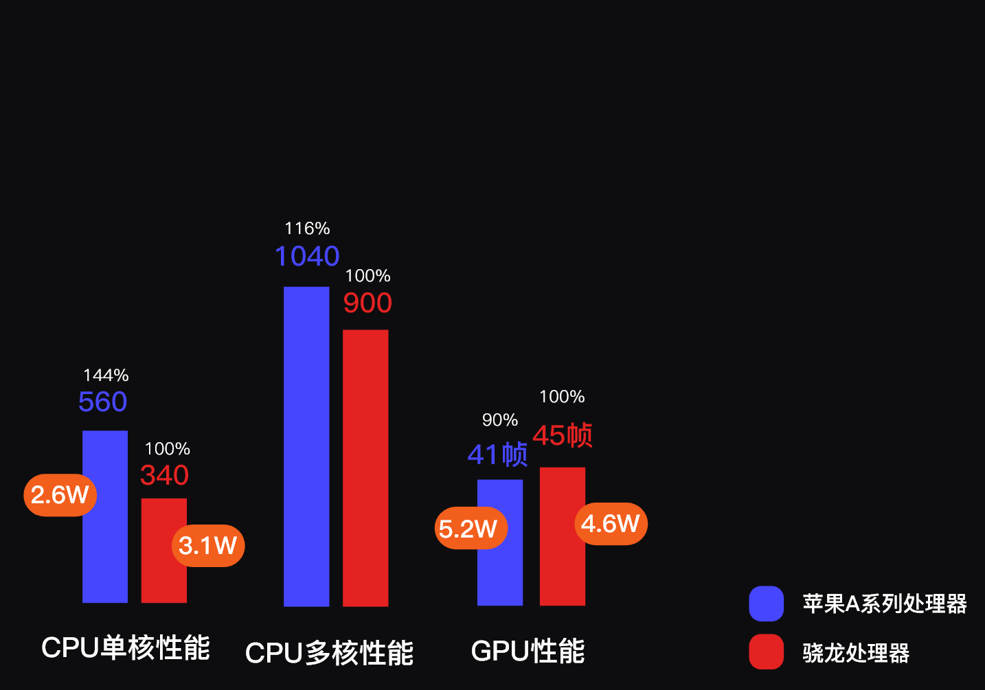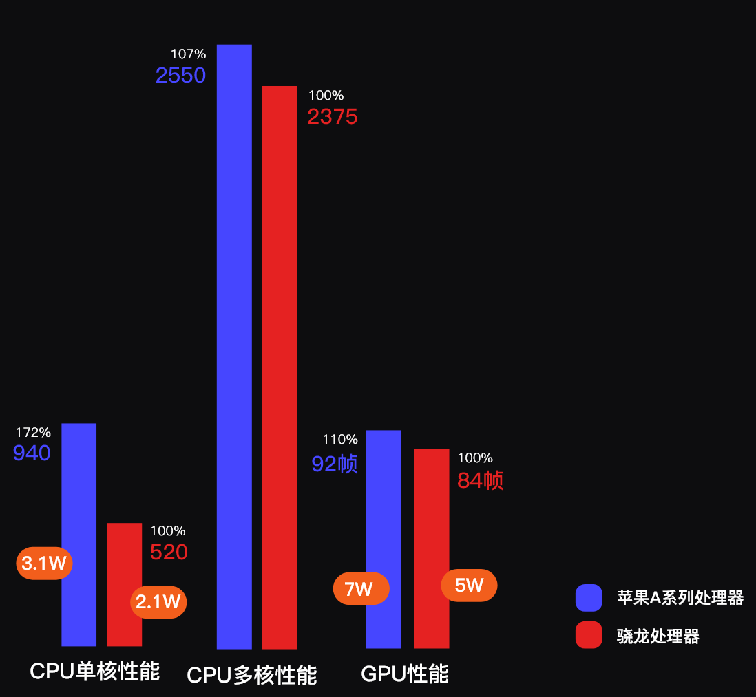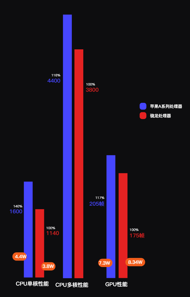 苹果A系列处理器全面反超。