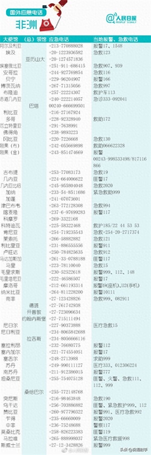 国际上的急救号码(数据来自网络,紧急情况请联系大使馆或使馆网站):