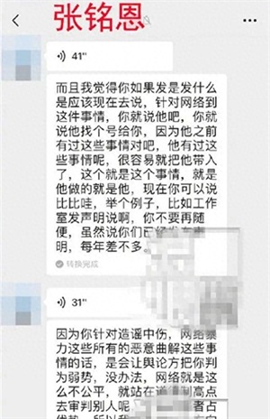 胡冰卿不干了,直接公开聊天记录,表示张铭恩教唆自己公然“撕”徐璐。