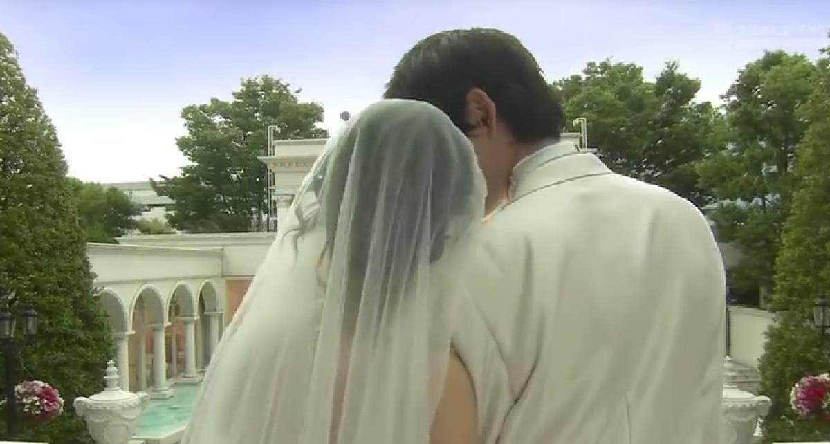 婚礼上的多田薰穿着一席洁白的蓬蓬裙婚纱,耳垂上别着一对漂亮的珍珠耳钉,笑得合不拢嘴,从证婚人的手里接过了鲜艳的捧花。