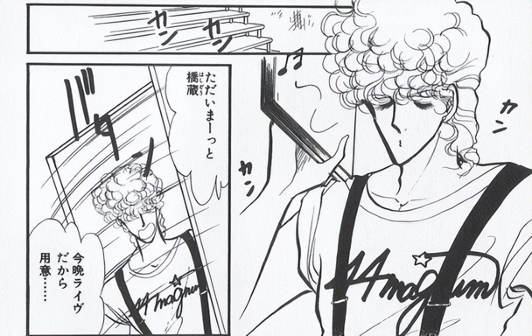 多田薰最爱的乐队,一支是Novela,是日本八零年代摇滚乐中耽美系前摇流派的翘楚;一支是新宿大热的44 magnum,这只乐队成员跟多田薰是朋友,后来也被多田薰画进了漫画里,成了漫画后期登场的反派乐队。