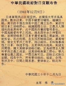 1941年12月7日,日本海空军突袭珍珠港,美太平洋舰队遭受重大损失。12月8日,美国国会通过决议对日本宣战,英国也宣布同日本处于战争状态。太平洋战争爆发。12月9日,国民政府随即发布《中华民国政府对日宣战布告》,正式对日本宣战。
