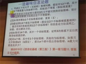 来自上海交通大学的叶中行教授报告的题目是《5G 背后的数学竞争》,从华为任正非的例子开始,讲到了 5G 技术和标准之争。为听众讲述了移动通讯系统的演变史,信息论早期的两大学派和香农信息论的发展以及我国信息论的发展历程,用通俗的语言普及了线性分组码、汉明码、代数码、卷积码、Turbo 码以及极化码。报告中还讲述了胡国定先生、章照止先生的传奇故事。最后还给听众留了一道趣味数学思考题: