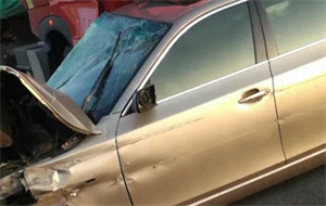 随后她就撞向了左边的护栏,被护栏弹开后,她的车又被后面的一辆货车撞上。