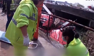 附近正好有几个养护工人,他们发现车祸后,赶紧从河里将一名男子捞了上来。附近巡逻的交警得知消息后也迅速到达了现场。