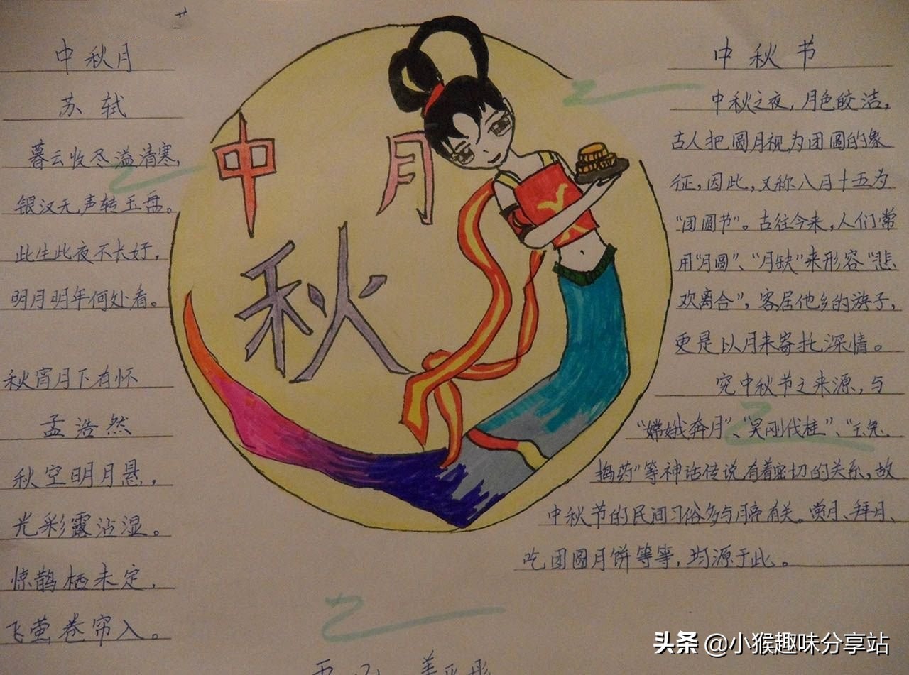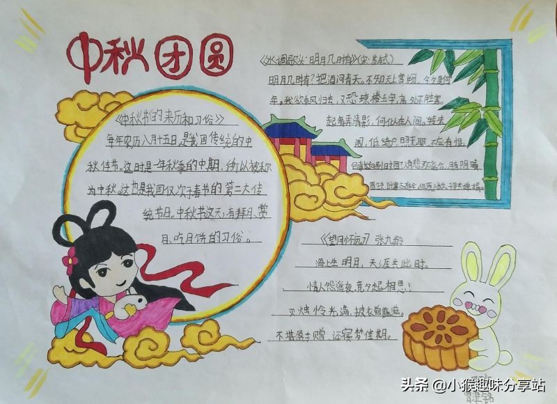 那么,在这么美好的节日里,肯定少不了得画上一幅漂亮精美的小画,来记录下你的所见所闻所感啦。看,小语老师已经为大家准备好了这么多中秋节主题的手抄报,来供大家参考。快跟我一起看一看吧!
