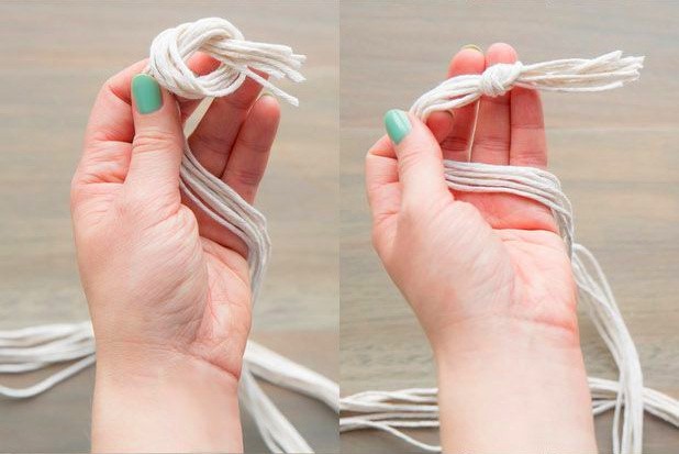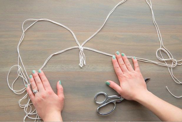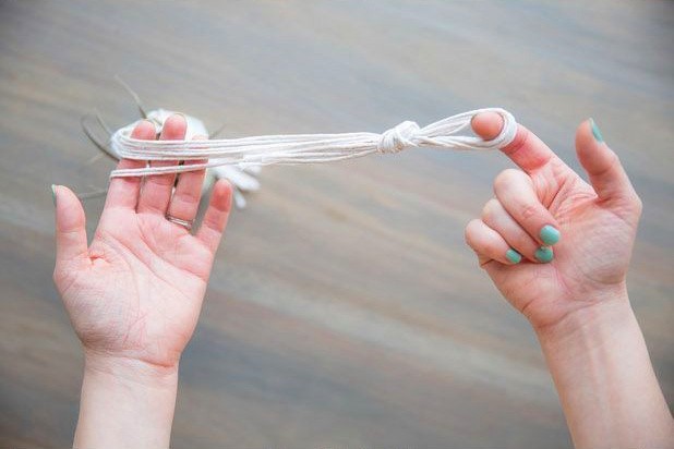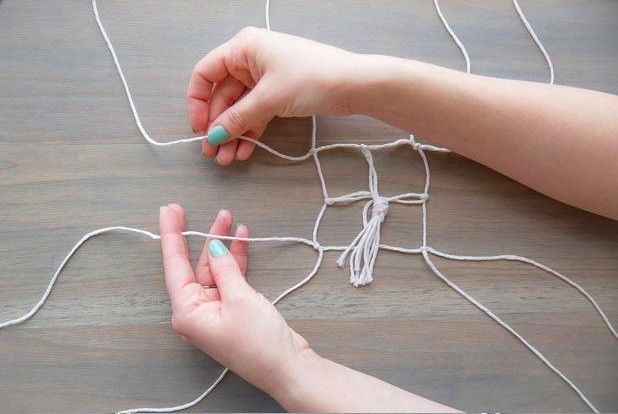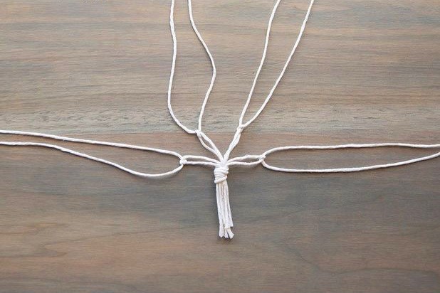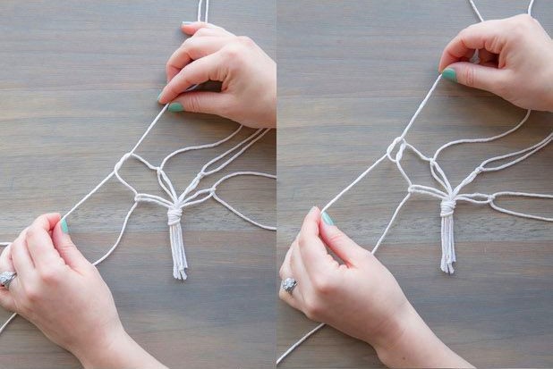 ▼Step2:利用绳子制作花盆的吊篮,按图片里的顺序仔细编织。