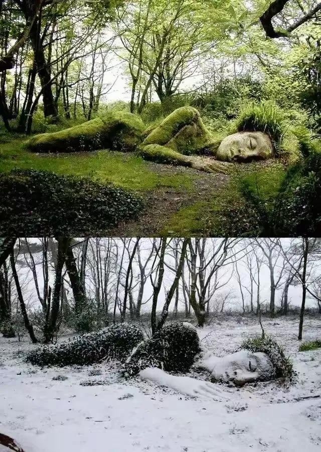 3.英国康沃尔黑里根失落花园的“泥女仆”雕塑,春去秋来,头发和面部随着季节也在变化,好像大自然孕育的生命体!