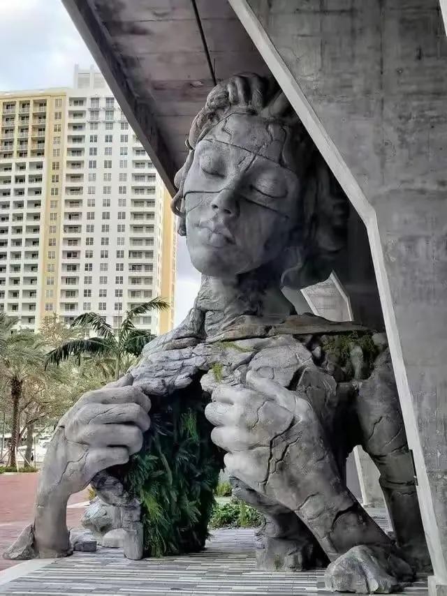 5.美国莫顿植物园里满身伤痕的“女巨人”雕塑,有一种极强的生命力!