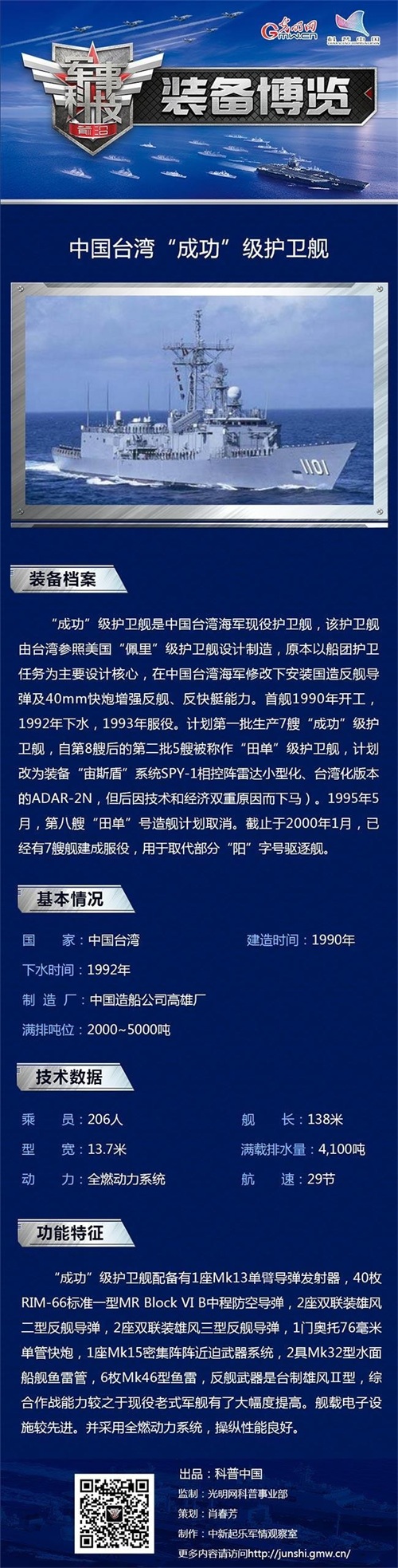 那么这次解放军的长春舰与台军的“成功”级护卫舰对阵,何者胜算更大呢?