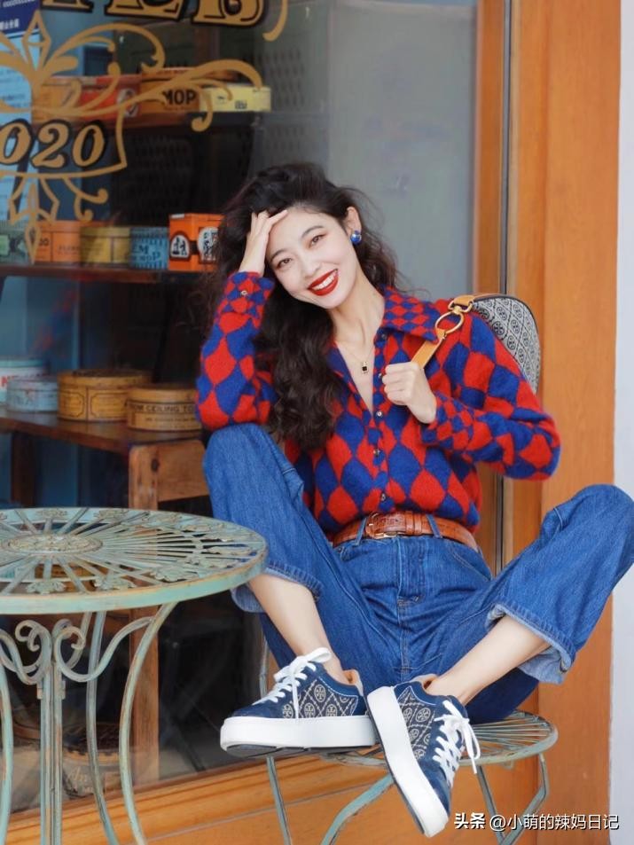 比如元素风格明显的针织衫+简约的直筒裤,碎花图案得得元素可以让上身看起来“膨胀”,塑造横向视觉,忽略腿粗的情况;下装不论是裙子还是裤子都要遵循A型、高腰这俩关键词,自带收腰还能显腰线和腿细长。