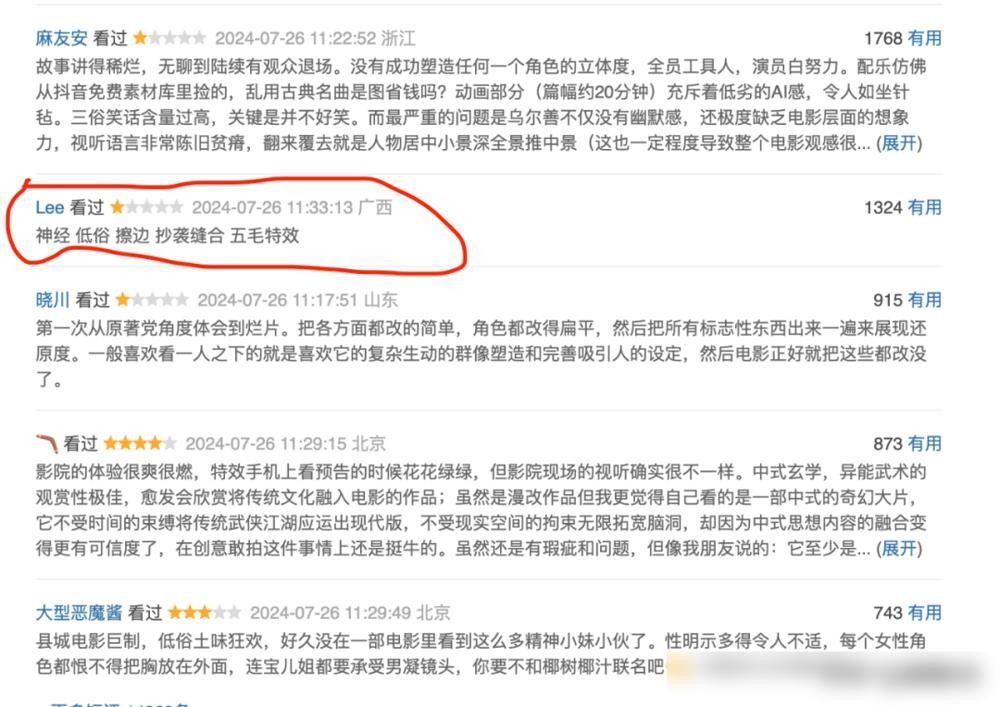 然而,就在影片上映后,观众们却纷纷在各大社交平台上吐槽,并且给出了极为负面的评价,一时间,这部备受期待的国产动画电影成了烂片的代名词。