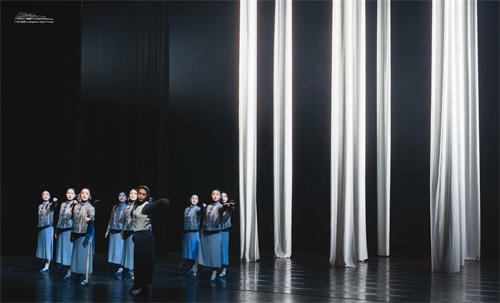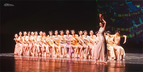 穿着旗袍起舞的金陵十三钗,明艳动人。她们在战争中相互扶持、共同成长,她们的举手投足间尽显女性魅力和力量。这也使得她们最后一眼看向南京城时,更显得慷慨悲壮。在舞剧的结尾,大幕上向这些女性致敬:在反人类的战争暴虐下,女性之花的绽放灿若朝霞。