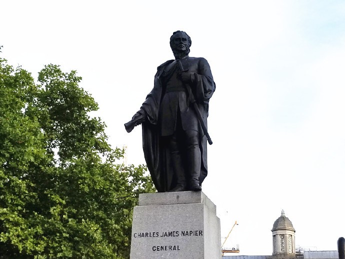广场的四个角落有四个雕塑基座,其中三个立有雕塑,分别是英国国王乔治四世,以及查尔斯·约翰·纳皮尔(Charles James Napier爵士),19世纪的英军将领,在征服印度的战争中战功卓著,曾任英军驻印军总司令;亨利·哈维(Henry Havelock爵士),也是驻印军的将领。