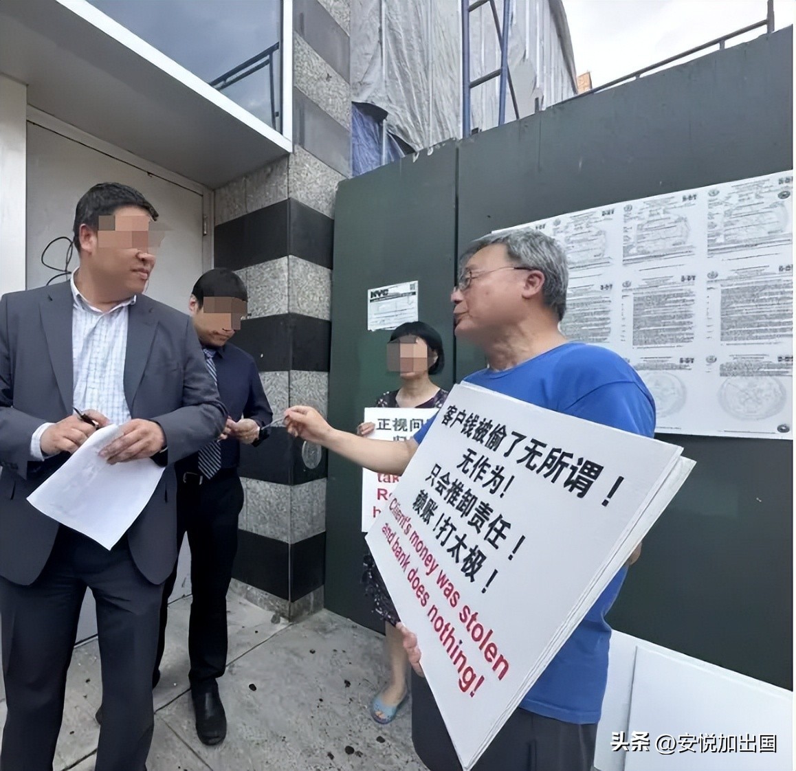 朱立创感谢华美的经理出来听取客户的心声,指这些案件复杂,虽不是银行的直接责任,但各大银行的一些客服政策和安全措施却让受害者维权非常不易,抗议仅是希望给银行一些压力,让他们意识到很多不利于顾客的规则应当被修改,比如应当允许客户选择只在开户行存钱取钱,并拿证件亲自签名,异地取款一律拒绝——不开通转账或异地取钱的服务,也不允许通过网络修改密码之类,用这样最原始和简单的方法就可以避免很多诈骗行为,但目前的银行做法却对此无动于衷。