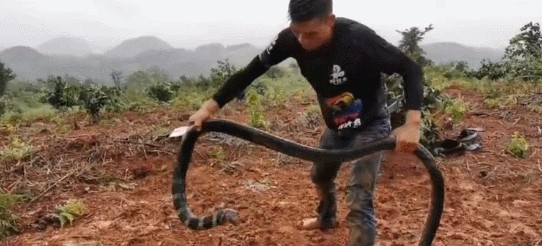 只要轻轻触碰到眼镜王蛇,它就会如条件反射一般迅速将身体前部挺立起来,朝你做出进攻姿势。仿佛是在告诫人类“不要惹我”。面对这种情况,就算是专业的捕蛇人也需要耗费很大的精力与眼镜王蛇周旋,甚至一般都不敢直接上手,而是使用捕蛇工具。也有一些不怕死的人不用工具就徒手与眼镜王蛇搏斗,那我只能说“抓蛇不规范,全村去吃饭”。