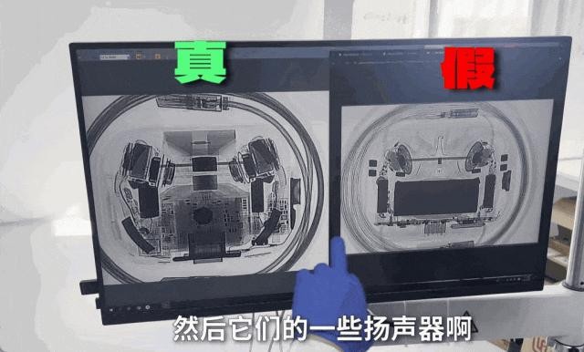 在实验室研究员对正仿两款 AirPods Pro 耳机进行检测后,可以清楚看到——两者的内部构造是完全不同的:仿品内部增加了配重块,并且缺失了很多的重要原件;并且两者的充电口、扬声器等都不相同,导致功能和音质都会有很大差别。