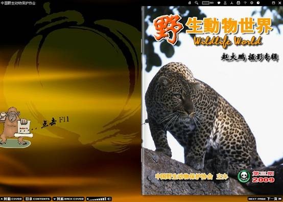 中国野生动物保护协会电子杂志《野生动物世界》,由中国野生动物保护协会携手电子杂志制作软件全球第一品牌iebook超级精灵主办。电子杂志的开创具有划时代的意义,是协会走向科技领域的一次伟大变革。在宣传推广动物保护事业上做出了前所未有的贡献。