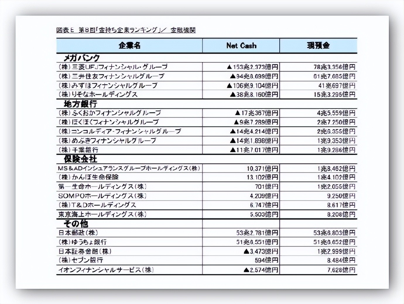 图表E 第8次《日本企业财富榜》/金融机构
