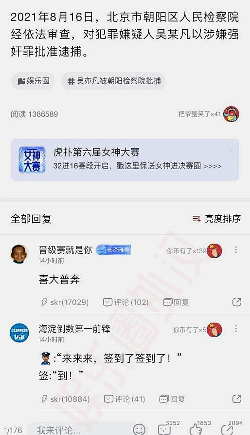 吴亦凡被批捕的新闻,相信大家都已经熟知。除了那些受到吴亦凡伤害的女性粉丝感到欣喜若狂,虎扑这边也燃起了强烈的兴奋情绪,连夜燃放了300响鞭炮,情景真是滑稽可笑,简直笑翻了哈哈哈哈哈。