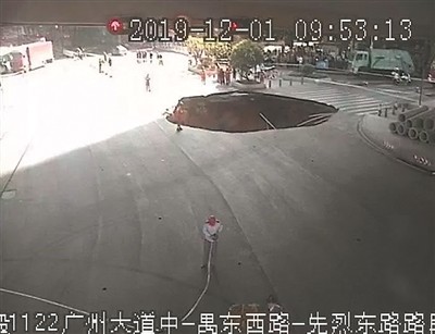 12月1日,广州大道北与禺东西路交界处地面出现塌陷。途经该区域的1辆清污车和1部电动单车掉落其中,3人被困。事发路段为广州地铁11号线沙河站施工区域。