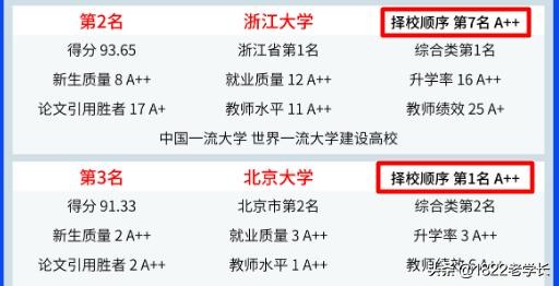 还好排行榜没有将“特色”贯彻到底,配了一个择校顺序,北大排全国第1,浙大第7名,或许让原本愤愤不平的北大不知道该如何发作了。