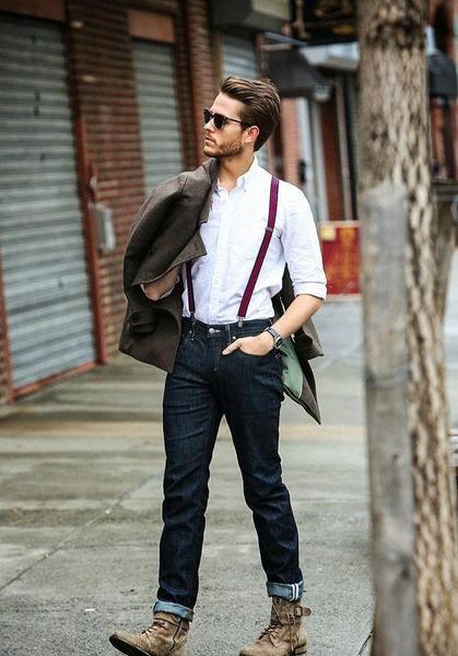 男士的背带裤在我眼里有两种款式,一种是工装款的,一种是单纯两条背带的。两种不同的款式分别穿出两种不同的风格。工装款的背带裤显得年轻,减龄,青春,活泼。而纯背带的背带裤显得复古文艺,富有一种浪漫气息。