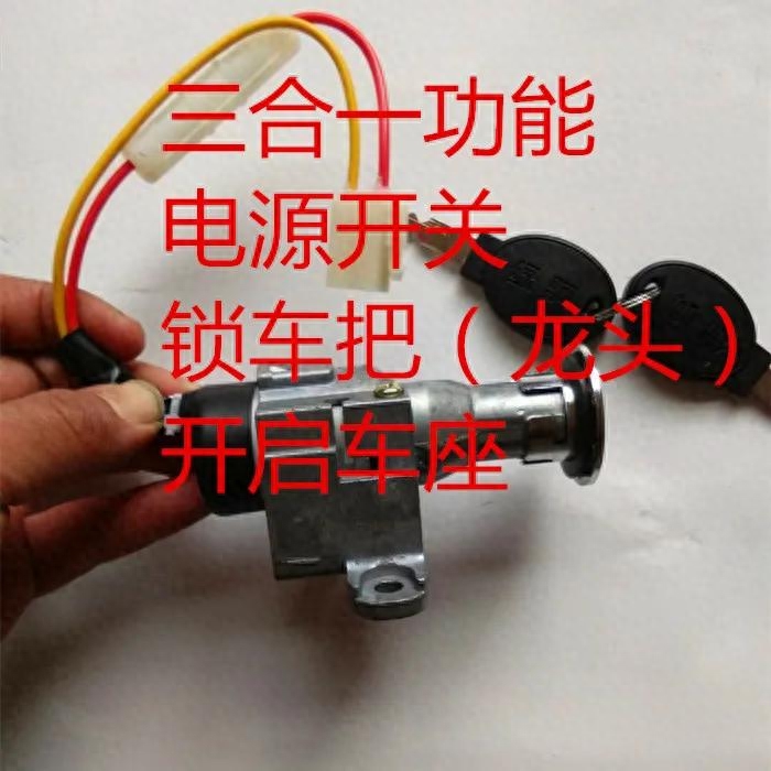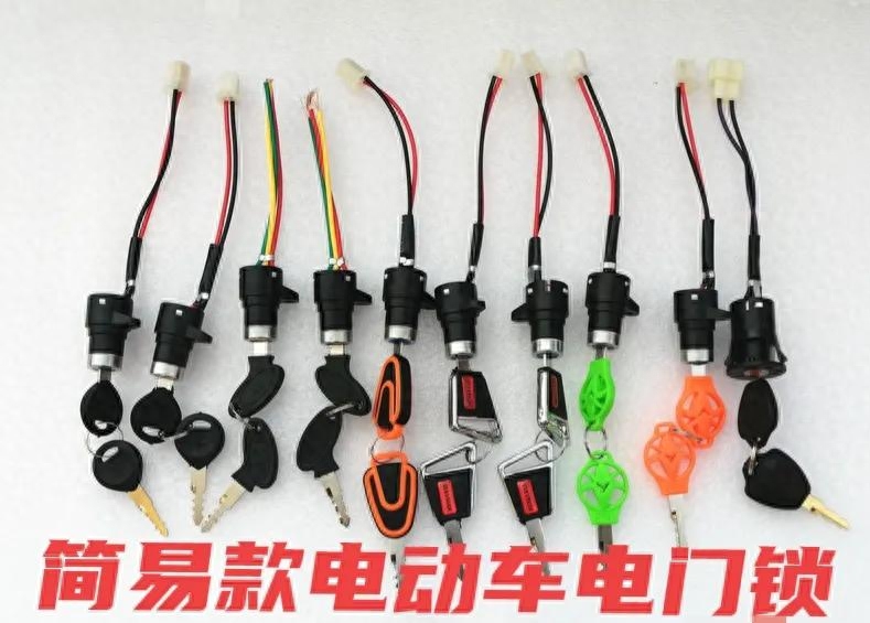 首先大家先了解一下电动车的电门锁。电动车的电门锁除了打开电源之外,还有锁车把,坐桶开启,以及灯光开启等功能。不同的车型,电门锁也不同,我们一般按照款型来区分两种,踏板式电动车和简易款电动车。