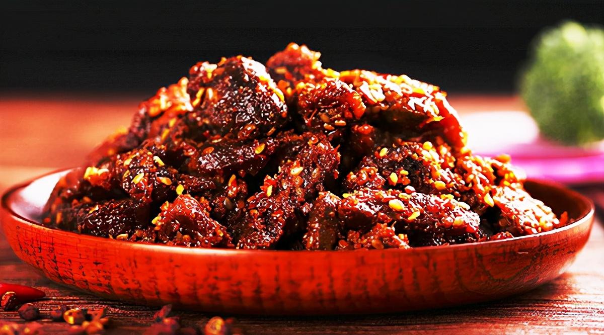 这款牛肉干呢它没有那么地“干”,它被香味十足的油给浸润了,吃的时候不仅有牛肉干的那种香味,还有丰富的调味香料带来的麻辣复合味,十分好吃。