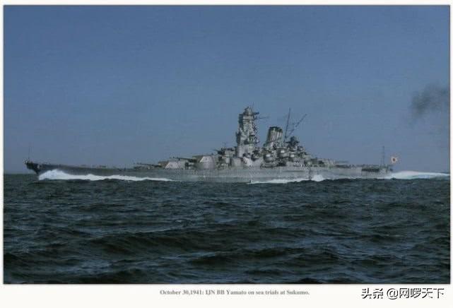 大和号战列舰,舰长263米、舰宽38.9米、满载排水量72808吨、航速27节,大和号最著名的就是它的主炮,三座三联装94式45倍径460毫米口径舰炮,一座炮塔总重可达2774吨。