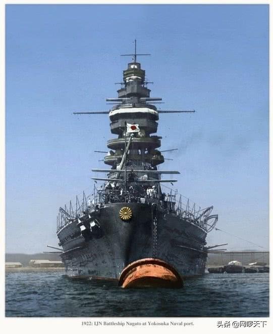 长门号战列舰(长门级战列舰),舰长224.9米、舰宽34.59米、满载排水量42850吨。装备4* 双联装三年式41厘米/45倍径主炮、18*单装三年式14厘米/50倍径舰炮,舰载机3*零式水上侦察机。
