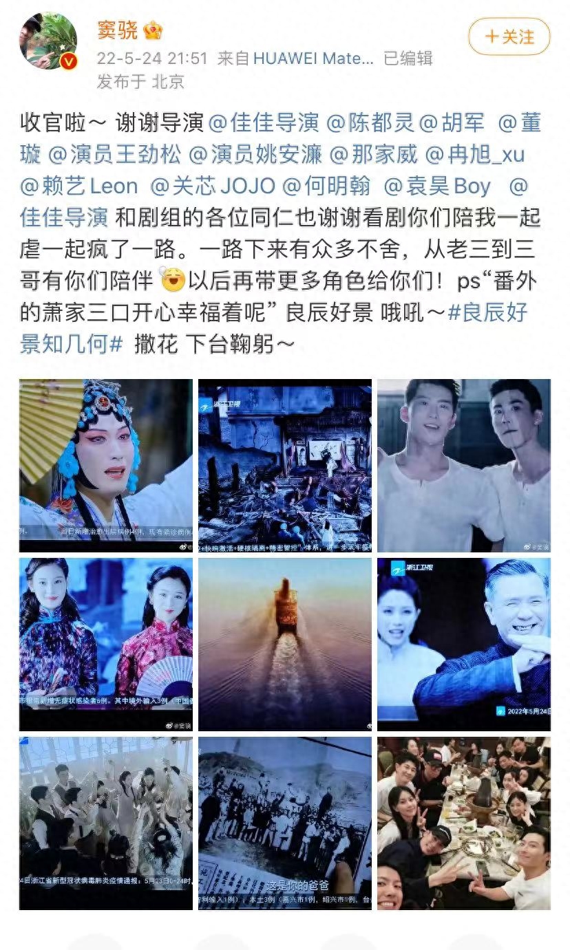 窦骁发文告别新剧,没晒和女主的合影,引发CP粉不满称其是赘婿