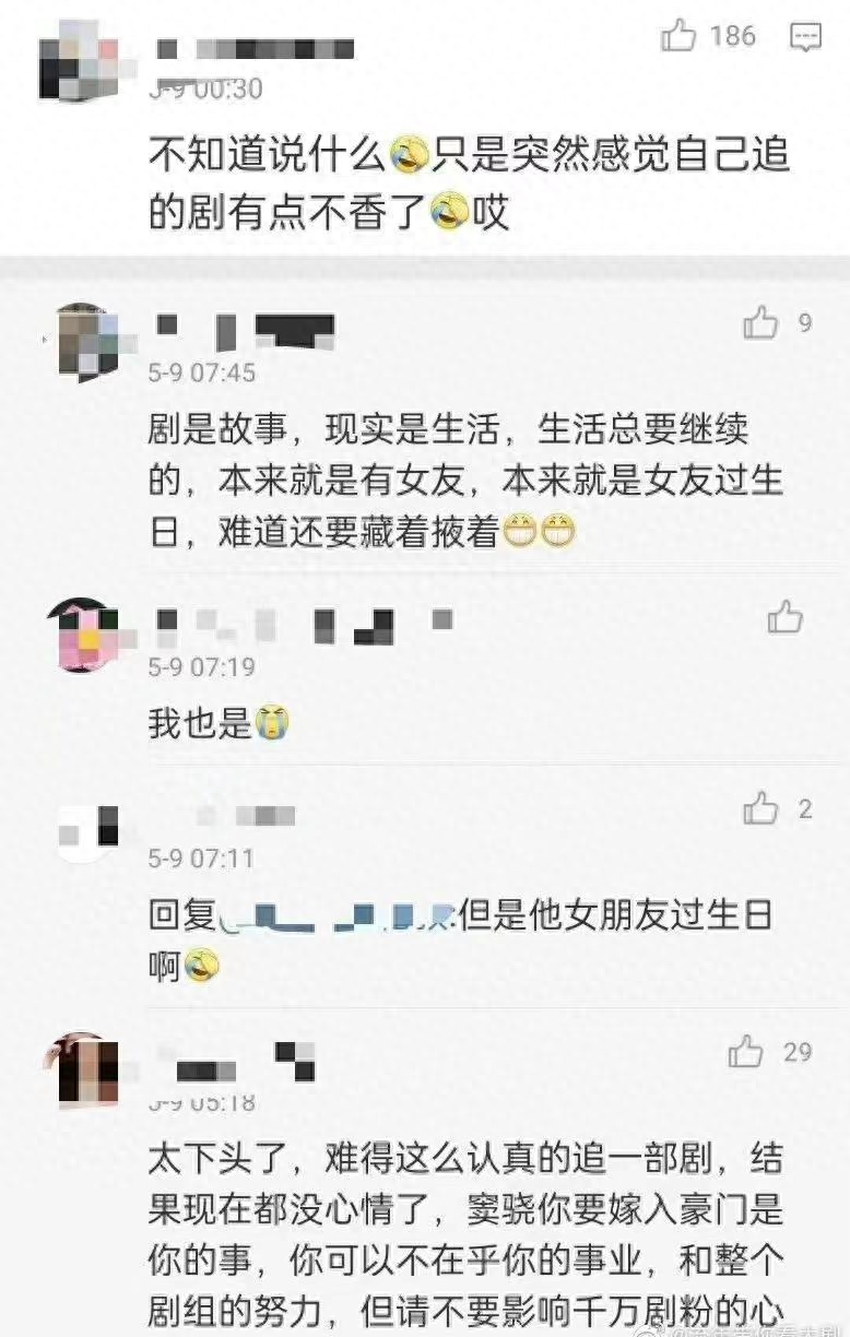 CP粉说话真难听,还说自己追的剧突然不香了,真是不可救药。也有的说太下头了,难得追的剧,结果现在没心情了,还说窦骁是嫁入豪门,有些很过分的还说他是赘婿,人家窦骁做演员也是能赚很多钱的,他未必就是吃软饭靠女友养,这些CP粉真的非常搞笑。还说要窦骁不要影响千万剧粉的心情,真的是很无语。