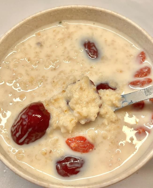 食材:红枣,牛奶,燕麦片,枸杞,蜂蜜。
