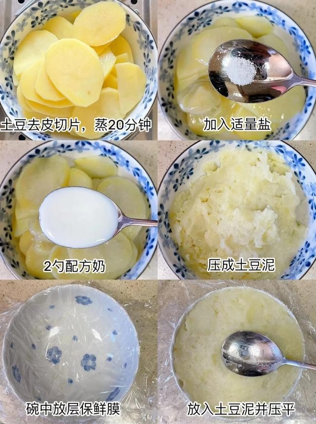 食材:土豆2个,牛奶50ml,黄油20克,盐适量,黑胡椒粉适量。