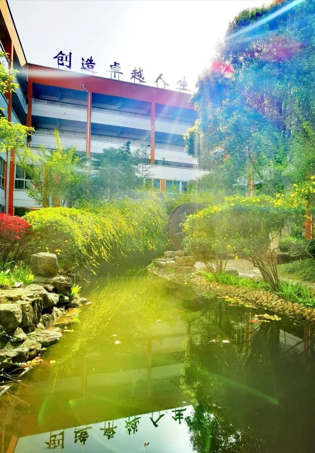学校环境优雅,既是美丽的花园、温馨的家园,又是成长的乐园、求学的圣园。
