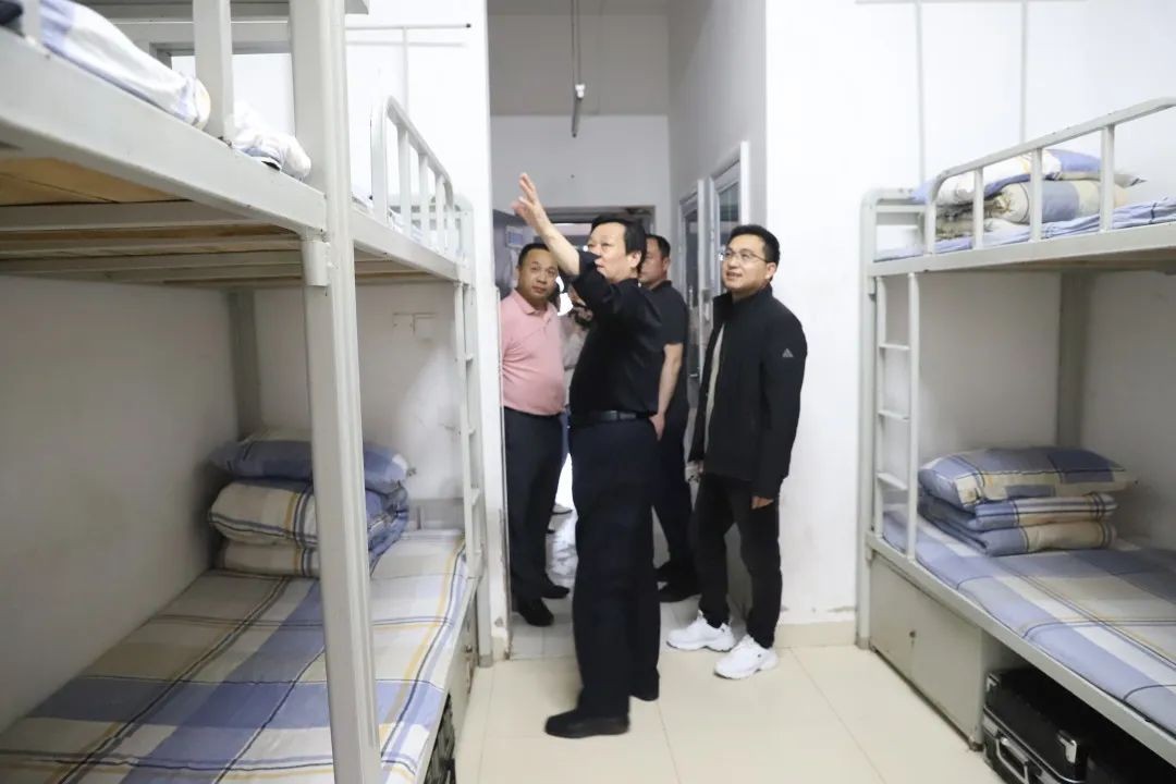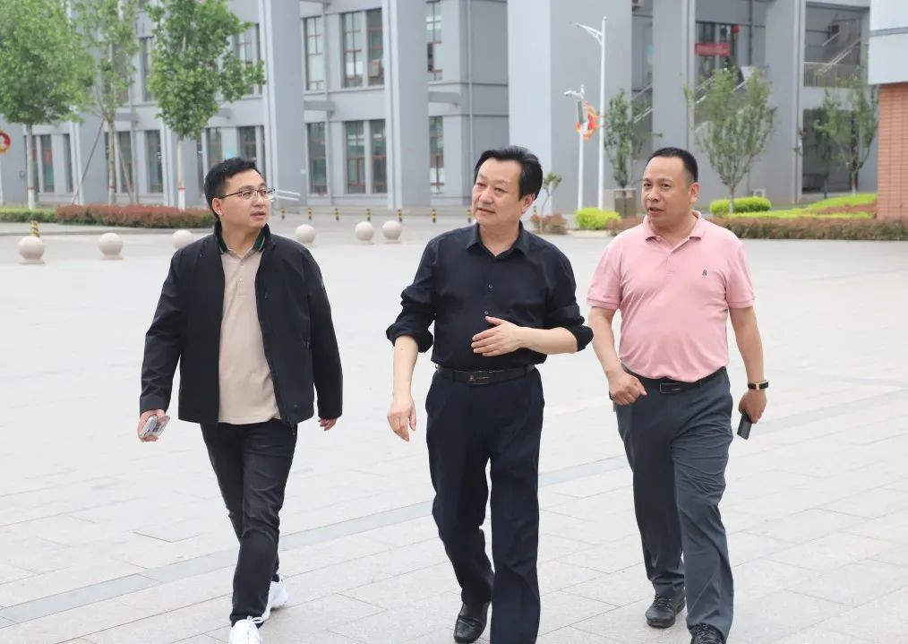 房善朝等校友在校长于世亮的陪同下,参观了一中校园及卓越中学校园。